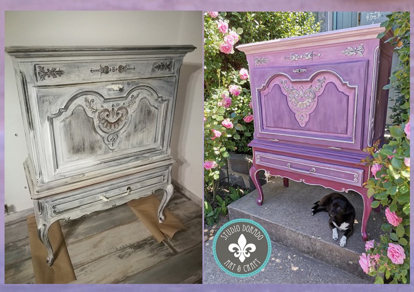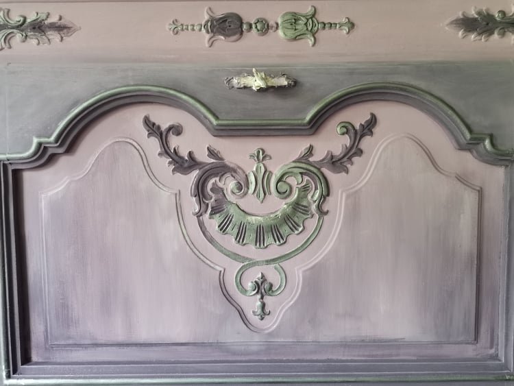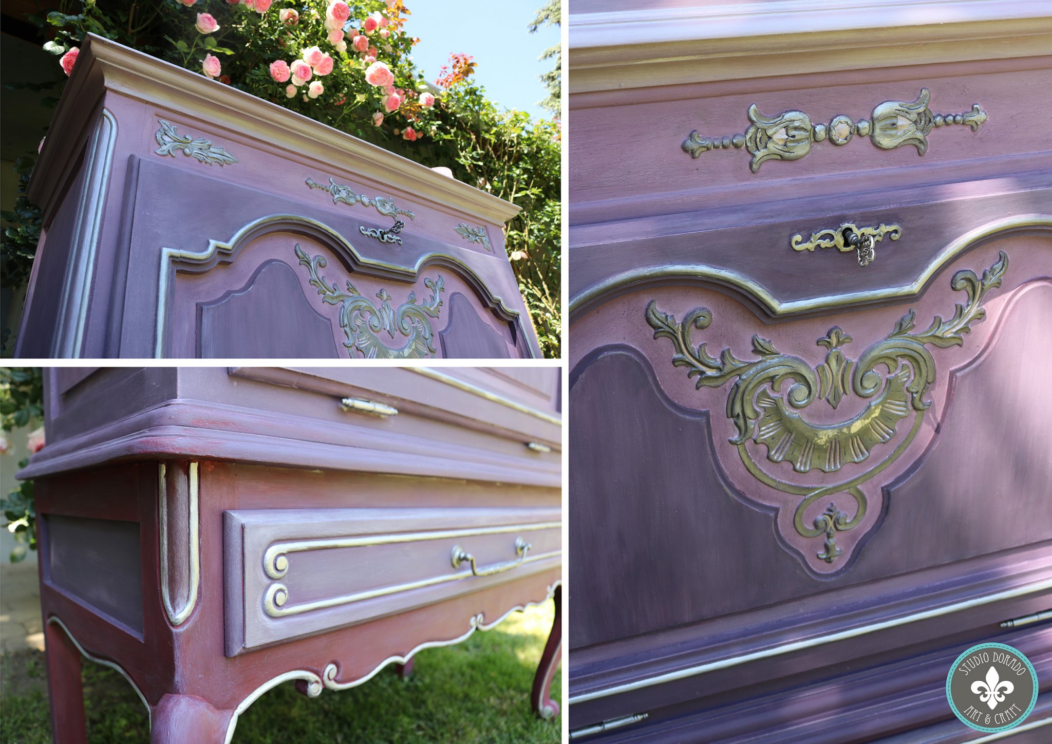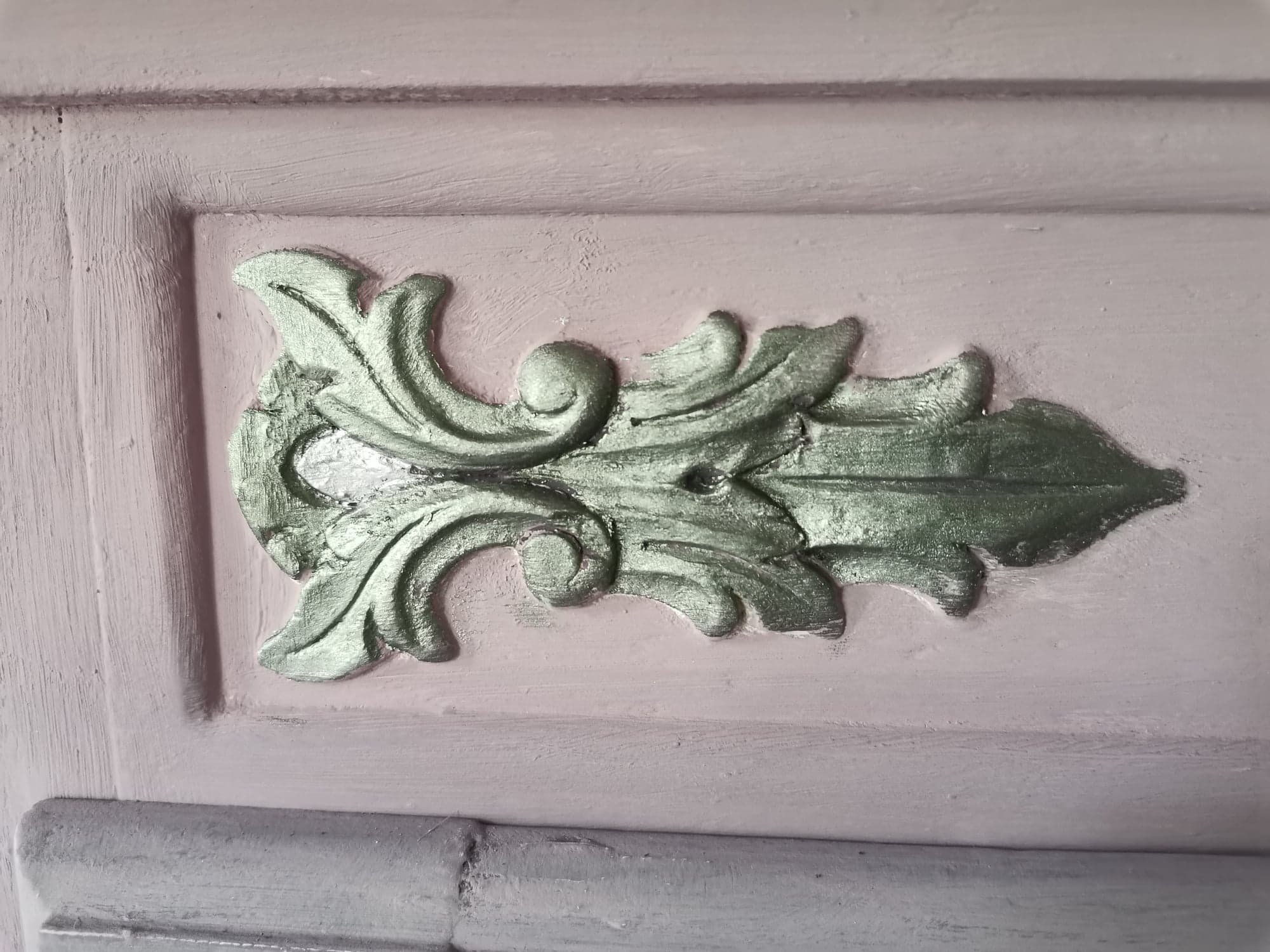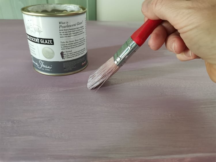 A bútor felső részét a festék teljes száradása után 180-as csiszolópapírral óvatosan megcsiszoltam, portalanítottam, majd Pearlescent Glaze -Gyöngyházfény lakkkal kentem le 2 rétegben.