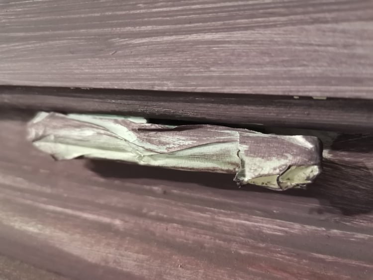 A fém részeket, ha lehet le szoktam szerelni a bútorról, ha nem megoldható, akkor maszkoló szalaggal leragasztom, hogy ne érje a festék. Ezeket a részeket csak akkor szoktam festeni, amikor már a bútorral elkészülök.