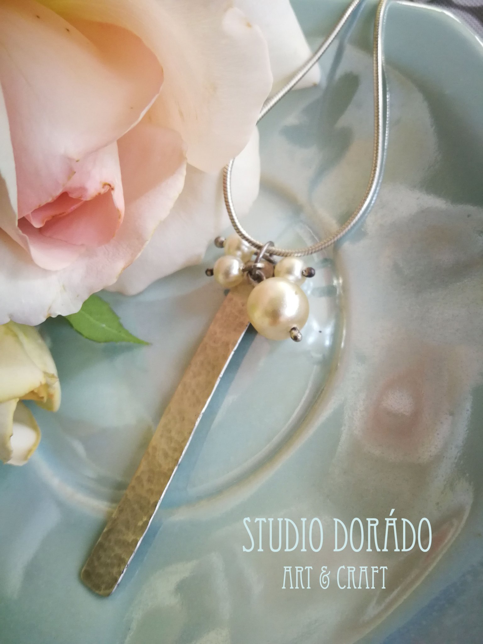 Elragadó személyiségű oktatónk, mesterünk Vincze Zita volt, aki végtelen türelmével minden kérdésemre megadta a válaszokat. A tábor ideje alatt (5 nap) megismerkedtünk a sárga- és vörösrézzel, illetve azokból készült lemezekből gyártottunk ékszereket. Első nap magam is készítettem egy kalapált felületű szettet, mely karkötő, fülbevaló, gyűrű (a képről most hiányzik), medál darabokból áll. A rézhez kerestem valamit, ami kicsit ünnepélyesebbé teszi, így a választásom a teklára esett. Az eredmény ez lett: