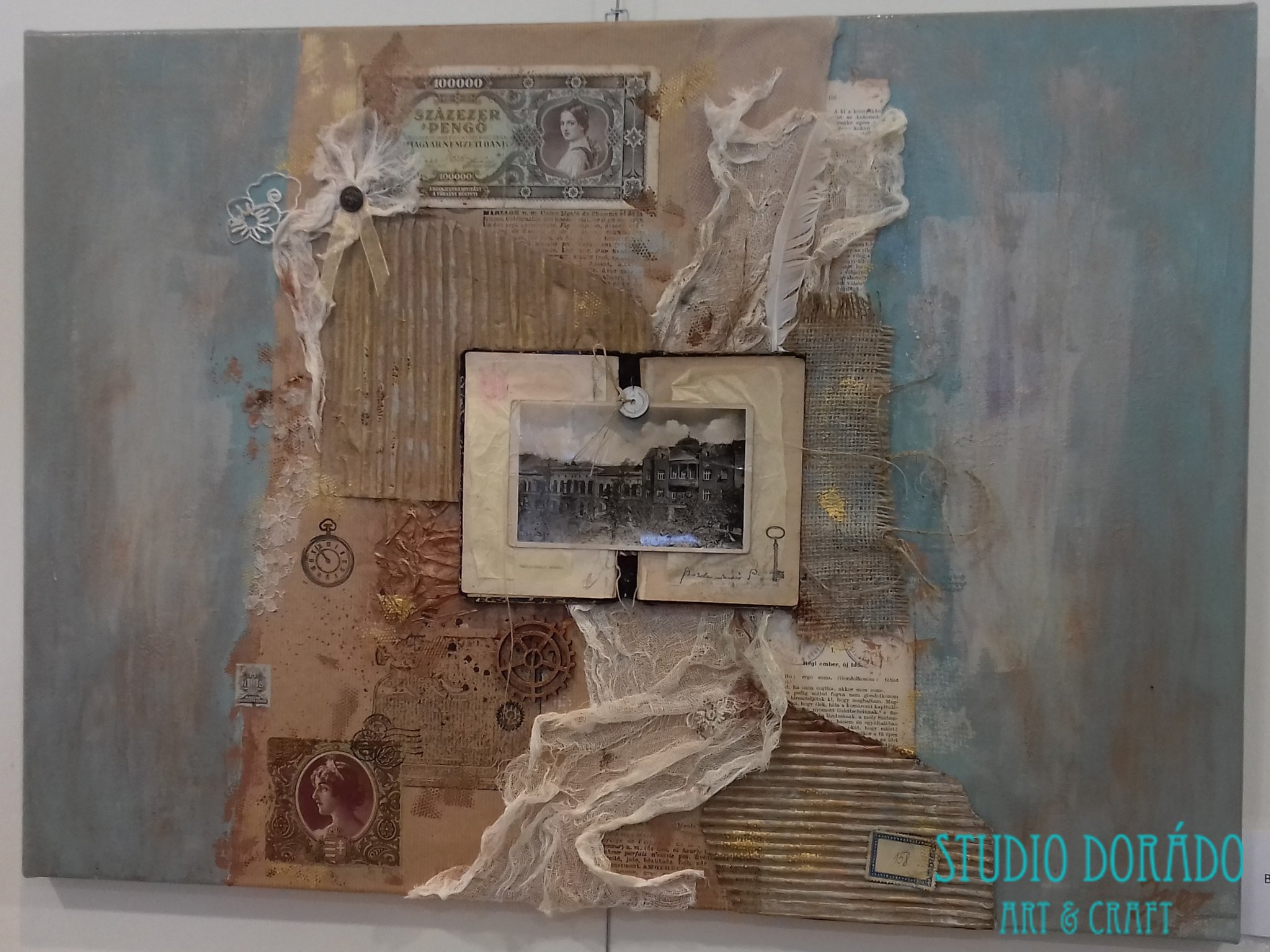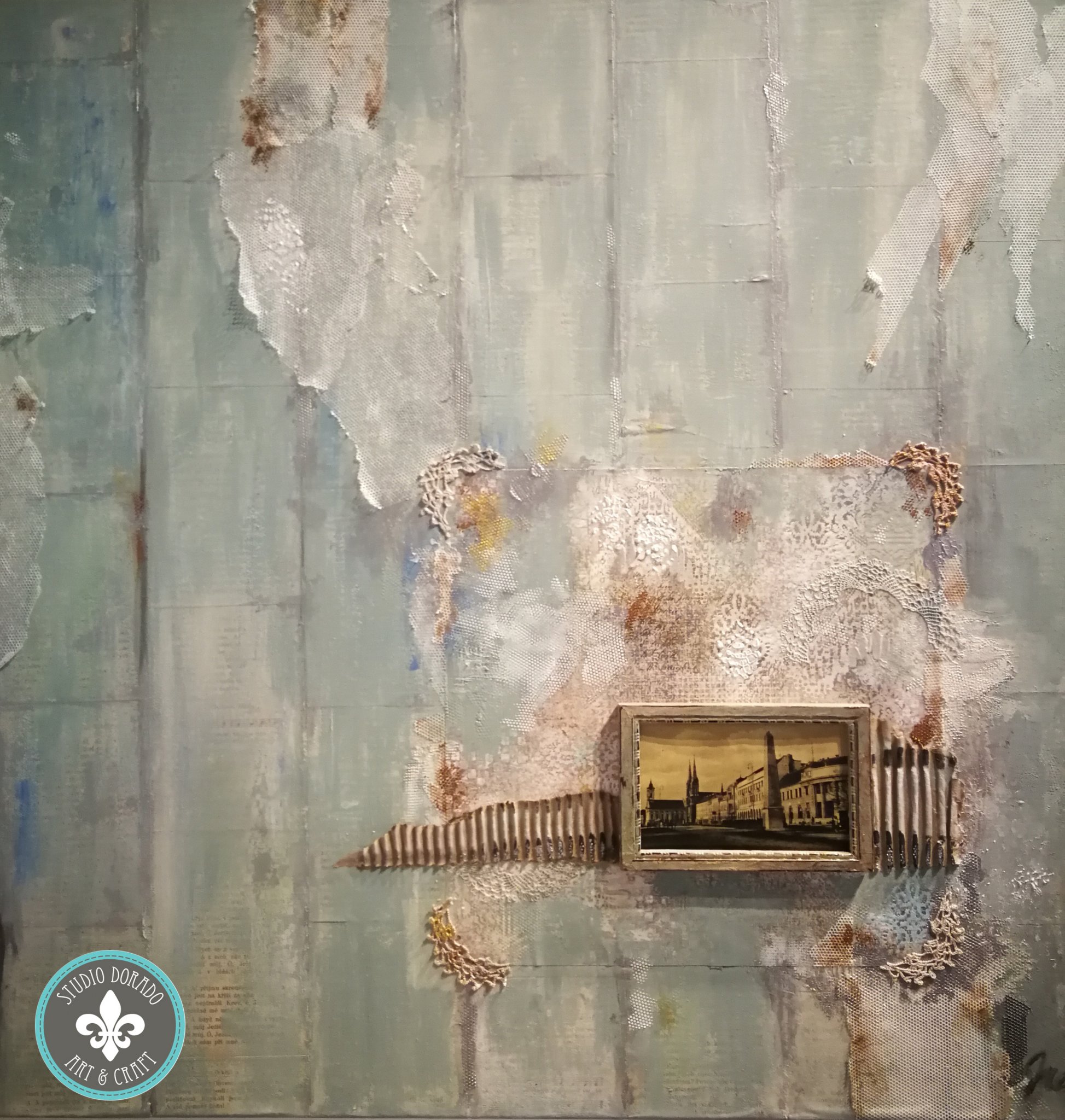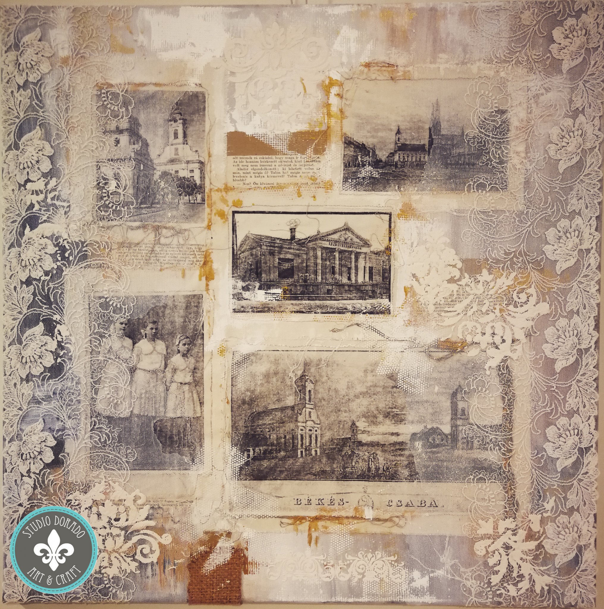 Csabai múlt – kollázs festmény (méret 50cm x 50cm)